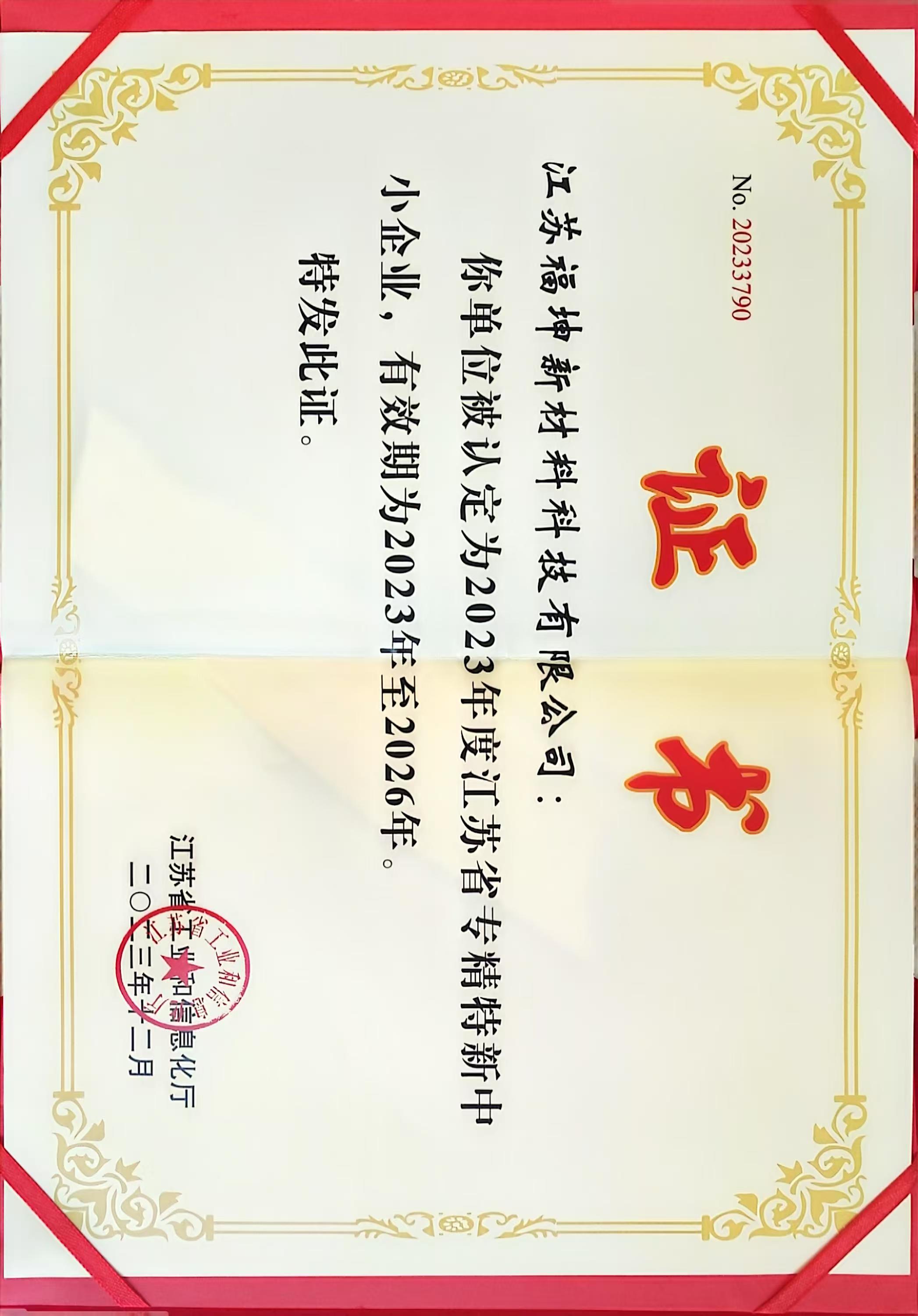• 江蘇省專精特新中小企業